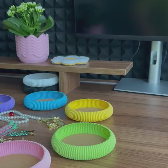 These vibrant stackable organizers not only organize your little items but also have one superpower – they happily stack on top of each other and fit perfectly with our other products. This means you can build your own colorful tower or even an entire eco-friendly organizing system based on your mood and needs. Keeping your desk tidy becomes a game: the organizers look like cheerful, colorful rings, and when combined with our other products, they create a practical, stylish, and unique set that will always make you smile.